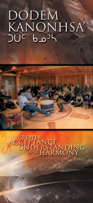 you to the Dodem Kanonhsa'. DODEM KANONHSA' Elder's Cultural Facility is a learning and sharing facility which fosters greater acceptance, understanding and harmony between members of First Nations and Non-Aboriginal People. DODEM is Anishinabem (Ojibwe) meaning 'clan' and KANONHSA is Kenienkaha (Mohawk) meaning 'lodge', and is transcribed in cree syllabics. The purpose of Dodem Kanonhsa' is to promote sharing and understanding of Aboriginal Culture and its philosophies. Dodem Kanonhsa is open to both Aboriginal and Non-Aboriginal people with the hope that it will benefit intercultural relations, cross cultural communication and understanding. The lodge allows us to continue the tradition, started by our Grandmothers and Grandfathers of oral teachings. |